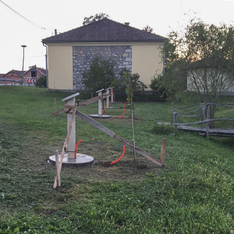 Betoniranja postolja oko postavljenih pločica u Aleji prvašića OŠ Glina – Marindvor